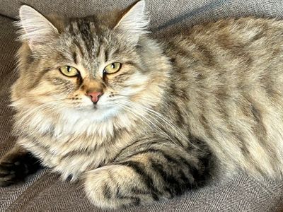 Amber is a kitten that was born into our Timber Siberians family. She is the daughter of Zeus and Idyllia. She likes to have her own space and has proven to be an amazing mom just like her mother. She is amazing and calm but loves to have fun with her fellow cats too. She likes to observe us rather than be a lap cat, but when she does cuddle she purrs so loudly. Her colouring is Black Brown spotted tabby.