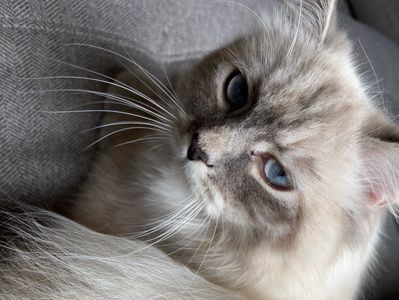 Aphrodite is a very special, amazing girl. She comes from Neva Angels cattery in Serbia, where our Sire Zeus is from. We adore "DeeDee" as we call her, she is constantly in my lap and sleeps with us every night. She super fluffy and cuddles everyone who visits. She is Seal Silver Tabby Point in colour